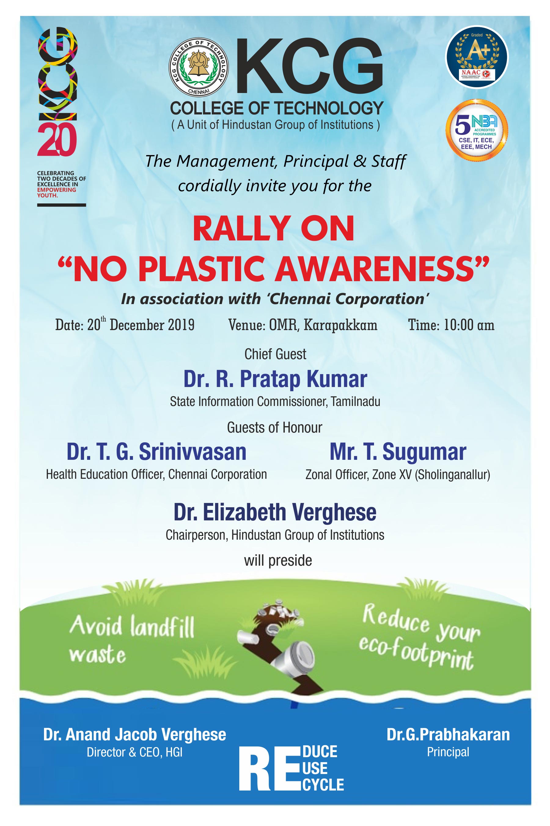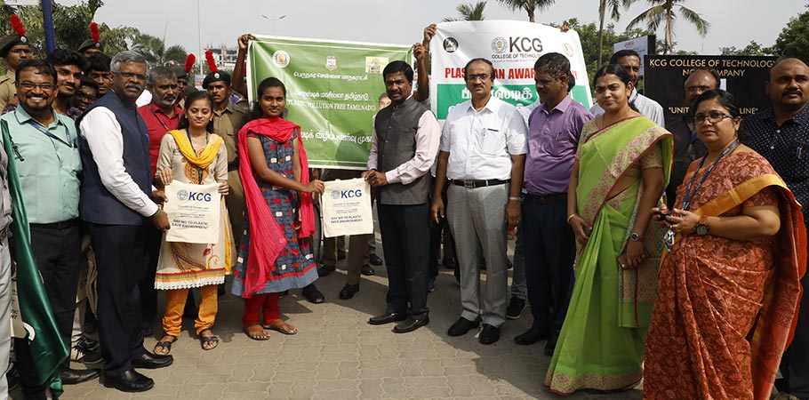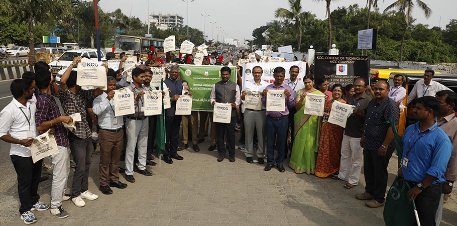 So, in order to spread an awareness amongst the public to reduce and replace plastic, a RALLY was organized by the KCG College NSS team. Nearly 1,000 students and 250 staff members of KCG College of Technology participated in the rally.