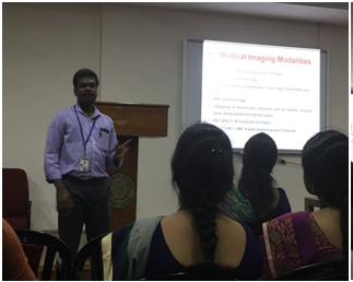 The second day of the seminar started with a talk by Professor Panneer Selvam. He started the session with the basics of imaging. He explained the science and Instrumentation behind all the imaging modalities like X-Ray, sonogram, CT, MRI, PET and Nuclear Imaging. He also made the audience understand how the image processing techniques help in improving the image quality in computer aided diagnostics. He also emphasized on the research avenues in this area in India and abroad.