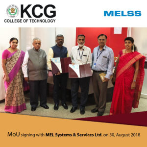 Mr.V.Ramanathan, Head-Industrial IT MELSS welcomed the Principal and the KCG team and gave an Introduction about MEL Systems and services Ltd. Dr. G.Prabhakaran, Principal KCG College of Technology gave an insight about KCG College of Technology.